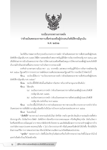 (๒) ระเบียบกระทรวงการคลัง ว่าด้วยเงินทดรองราชการเพื่อช่วยเหลือผู้ประสบภัยพิบัติ