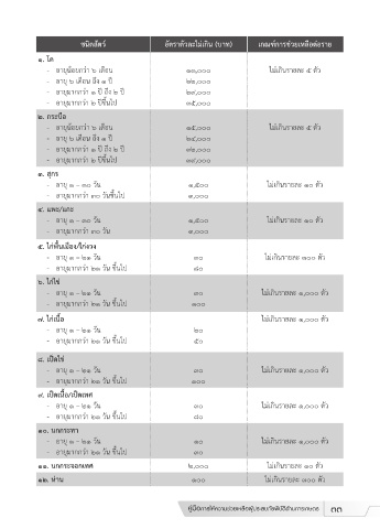 ชนิดสัตว์ อัตราตัวละไม่เกิน (บาท) เกณฑ์การช่วยเหลือต่อราย